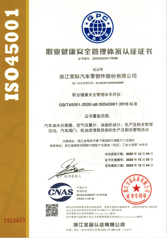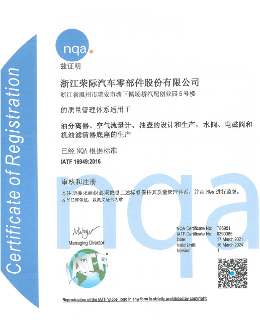 浙江荣际股份坐落于浙江省瑞安市塘下镇场桥汽配创业园。公司现有员工200多人包括工程师超20人和质检人员10人,厂房总面积17800平方米。浙江荣际成立于2006年,是一家以研发、生产和销售为一体的综合企业,主营产品为
