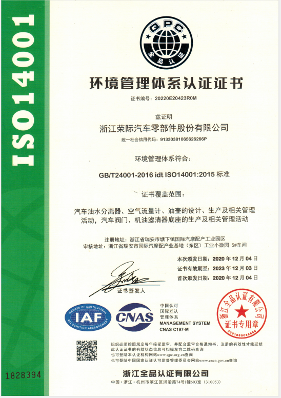 德系车的汽车油分离器、机滤座总成、暖风水阀和空气流量计等。经过多年的努力,已与国内外一流的主机、配套企业、建立稳固的合作关系。产品远销美国、德国、意大利、波兰、西班牙、俄罗斯等欧美众多国家。目前与公司已经通过IATF16949质量管理体系、ISO45001职业健康管理体系、ISO14001环境管理体系;并在2018年先后荣获浙江省科技型企业和国家高新技术企业、温州市首批绿色工厂、浙江省省级研发中心。 目前公司拥有5项发明专利,2项外观专利以及20余项实用型专利。公司始终贯彻“质量第一、顾客满意、持续改进、永无止境”的宗旨,与客户携手共进,互惠互利 。
